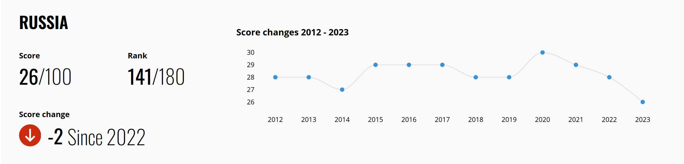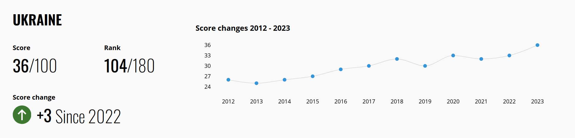 2022 Corruption Perceptions Index. (n.d.). Transparency International. Retrieved May 2, 2024, from https://www.transparency.org/en/cpi/2022/index/ukr↩︎