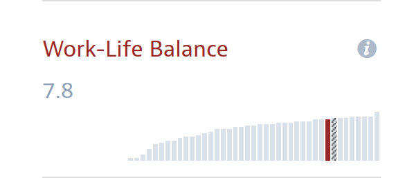 Im Folgenden sehen Sie Russland (farbig) im Vergleich zu Deutschland. Russland ist bei allen Kriterien viel schlechter, außer bei der Work-Life-Balance.